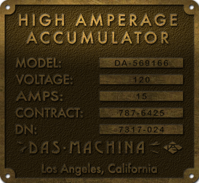 HIGH AMPERAGE ACCUMULATOR: Named in the style of Kenneth Strickfaden's (1896-1984) machines.